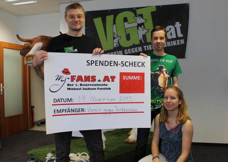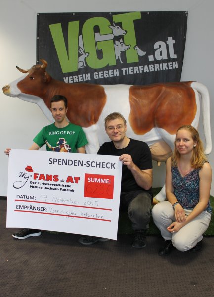 Der Verein gegen Tierfabriken ist eine unabhängige Tierschutzorganisation und hat es sich zum Ziel gemacht, Mitgefühl und Respekt gegenüber Tieren in der Gesellschaft zu verankern. Er setzt sich beispielsweise für ein Ende der Pelzproduktion und der Gatterjagd, sowie für bessere Haltungsbedingungen von Nutztieren ein. Hierfür informiert der Verein die Gesellschaft über die Anwendung von Eingriffen ohne Narkose (Kastration, Enthornung), sowie Verstümmelungen (Schnabelkürzen, Schwänzekupieren, Zähneschleifen) in der Intensivtierhaltung. Auch die Aufdeckung illegaler Gewaltanwendung (Metallwerkzeuge, Elektroschocker), mangelhafter Betäubung und fehlender tierärztlicher Kontrollen mit Hilfe verstecker Kameras in österreichischen Schlachthöfen sind Teil der Öffentlichkeitsarbeit der Tierschützer. Mit seiner Spende unterstützte der Fanclub den Verein gegen Tierfabriken bei seinem gewaltlosen Aktivismus und seinen Info-Kampagnen.
