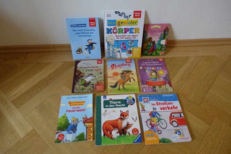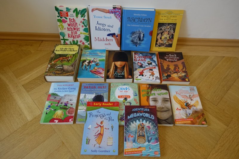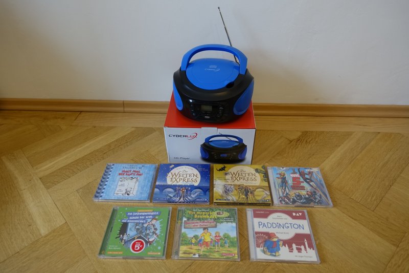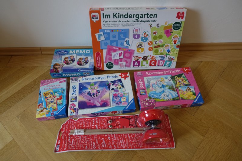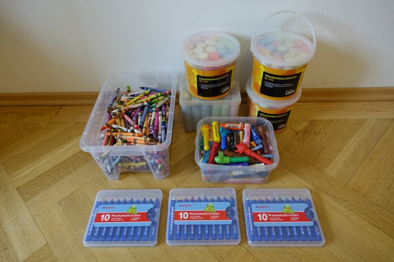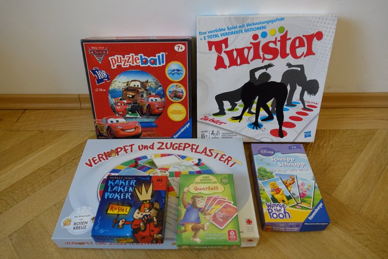 CD Player, Hörbücher, Kinder- und Jugendbücher, Buntstifte, Spitzer, Wachsmalkreiden, Straßenkreiden, Malvorlagen, Window Color Farben, Spiel-Werkbank, Kaufmannsladen, Spielzelt, Kühlbox mit Kühlakkus, Bälle, Ballpumpen, Gesellschaftsspiele